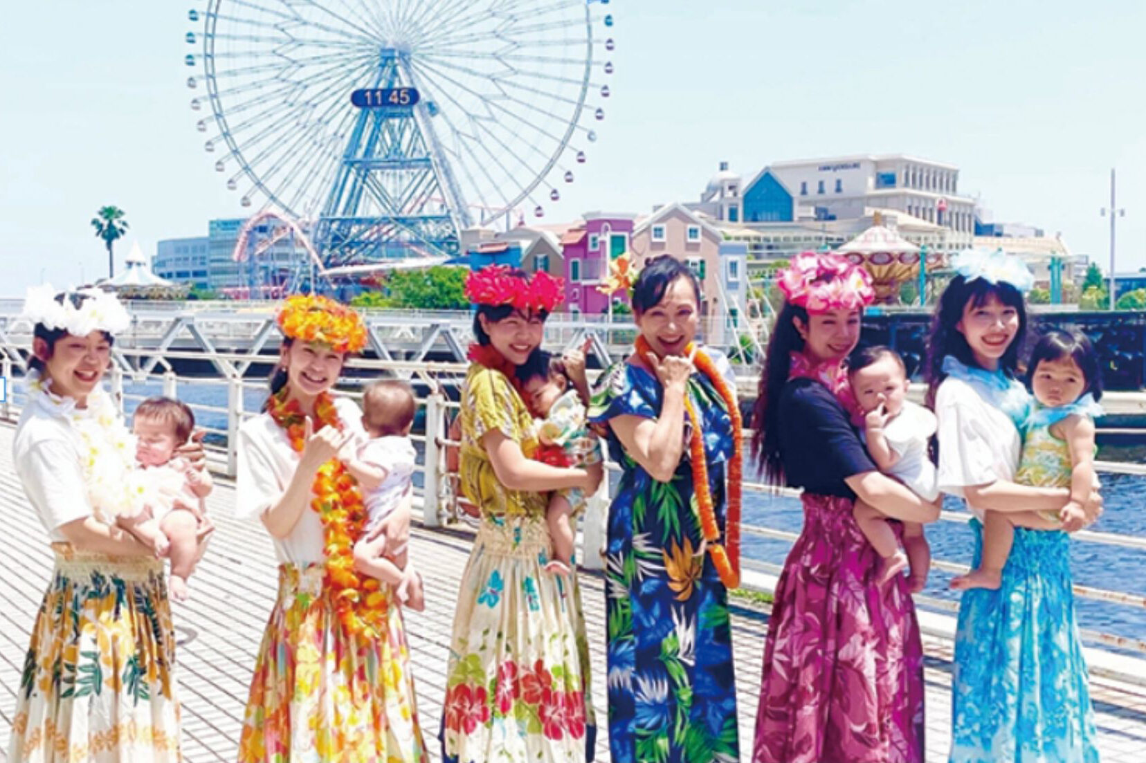 美しいフラの調べに乗せ、胸に抱いたわが子と心一つに舞います。